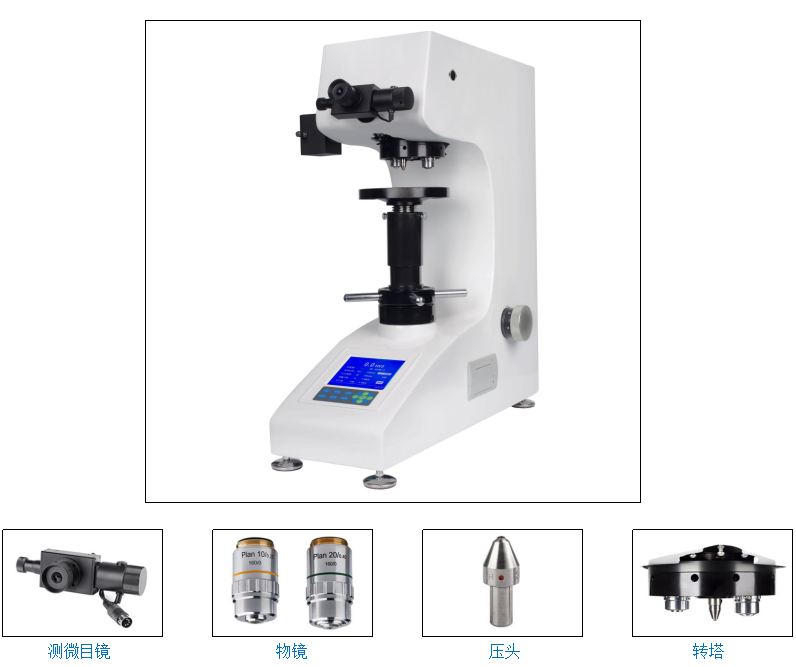 一体化铸铝机身,不变形,不位移,外观漆水采用汽车烤漆工艺,砝码加载结构,性能稳定,5.1吋大屏LCD显示,可切换硬度标尺HV或HK;菜单式结构,操作简便;高清光学系统和物镜,光源亮度可以20级调节,硬度换算功能;对角线长度D1和D2编码器输入,减少人为读数误差,定位准确;测量结果和数据处理,可通过打印机输出。